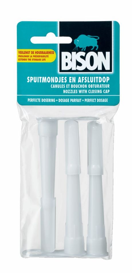 Set met 3 spuitmondjes en 1 kokerafsluitdopje. Bruikbaar voor alle kitsoorten en kokers.
