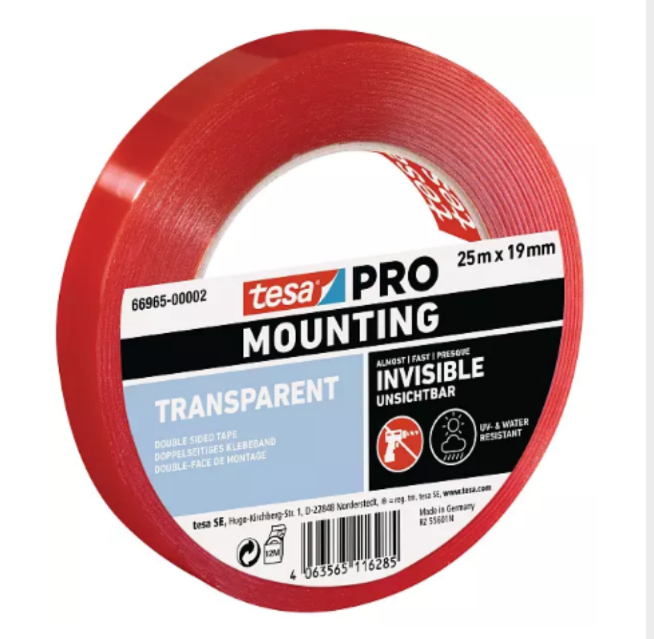Bevestig vlakke voorwerpen binnen- en buitenshuis: gebruik op oppervlakken zoals glas, tegels, behandeld hout en vele soorten kunststof. De kristalheldere, extra dunne tape is temperatuurbestendig tot 100°C. Hij is bestand tegen schade veroorzaakt door vocht, (bepaalde) chemicaliën, weekmakers en uv-licht. Een enkele strook van 10 cm kan tot 2 kg dragen. De ideale oplossing voor het bevestigen van items op transparante, massieve oppervlakken.