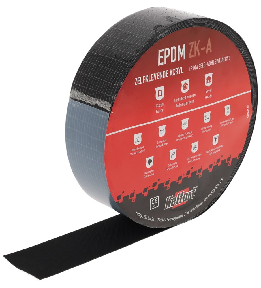 Kelfort zelfklevende acryl EPDM (ZK-A)strook bied je de oplossing om een waterkerende en luchtdichte afdichting te realiseren zonder het gebruik van kit.