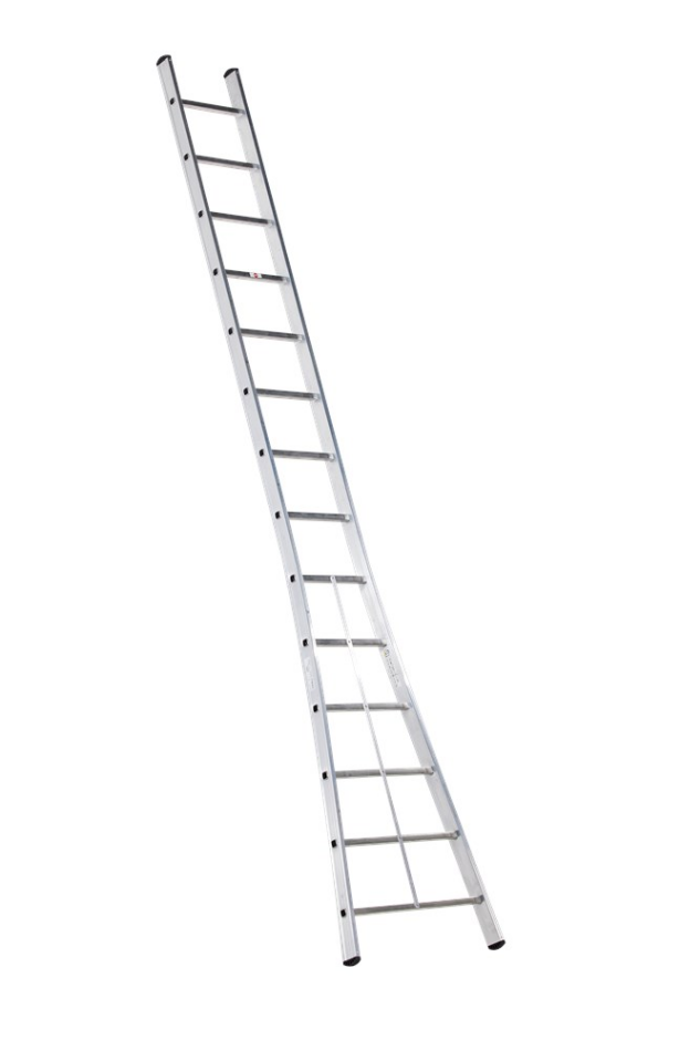 De enkel uitgebogen ladder is verkrijgbaar in variaties van 10, 12, 14 of 16 sporten. Ondanks de compacte afmetingen, haal je met werkhoogtes tot wel 5,3 meter een maximaal resultaat. Deze ladder is ontzettend eenvoudig in gebruik en zet je gemakkelijk tegen elke muur of wand. Met een gewicht van 6 tot 10 kilogram is deze ladder door één persoon te tillen.