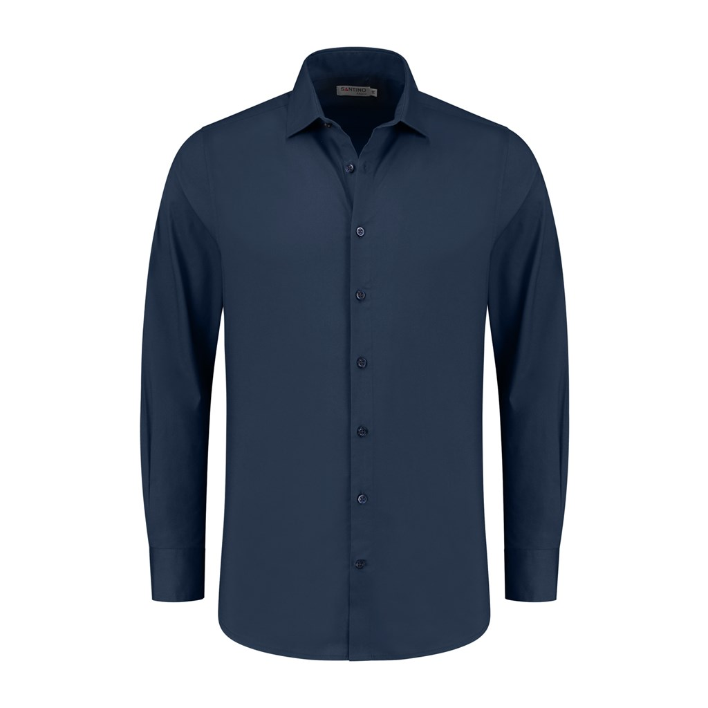 Shirt, 58% organisch katoen / 40% rPET recycled polyester / 2% elastaan, 125 gr/m2, 2-way stretch poplin, modern fit shirt met lange mouwen, modern cut-away kraag met vaste kraagbaleinen, verstelbare manchetten.