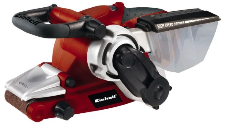 1010 W, automatische bandloopcorrectie, laag trillings- en geluidsniveau. Afmeting schuurband 76 x 610 mm.