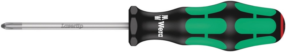 Hoogwaardige Kraftform Plus schroevendraaiers. Meercomponenten Kraftform Plus handgreep om prettig en ergonomisch verantwoord te kunnen werken en blaren en schuurplekken te voorkomen. Harde gripzones voor een hoge werksnelheid, zachte gripzones voor een hoge draaimomentoverbrenging. De punt van Wera Lasertip schroevendraaiers wordt met laserstralen microscopisch fijn opgeruwd. Dit ruwe oppervlak "bijt" zich letterlijk vast in de schroefkop. Onbedoeld wegglijden behoort zo tot het verleden. "Take it easy toolfinder" met kleurcodering op profiel en maatcode - voor het eenvoudig en snel vinden van het benodigde gereedschap. Zeskantige wegrolbescherming verhindert telkens wegrollen op de werkplek.