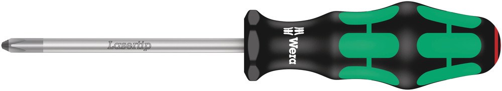 Hoogwaardige Kraftform Plus schroevendraaiers. Meercomponenten Kraftform Plus handgreep om prettig en ergonomisch verantwoord te kunnen werken en blaren en schuurplekken te voorkomen. Harde gripzones voor een hoge werksnelheid, zachte gripzones voor een hoge draaimomentoverbrenging. De punt van Wera Lasertip schroevendraaiers wordt met laserstralen microscopisch fijn opgeruwd. Dit ruwe oppervlak "bijt" zich letterlijk vast in de schroefkop. Onbedoeld wegglijden behoort zo tot het verleden. "Take it easy toolfinder" met kleurcodering op profiel en maatcode - voor het eenvoudig en snel vinden van het benodigde gereedschap. Zeskantige wegrolbescherming verhindert telkens wegrollen op de werkplek.