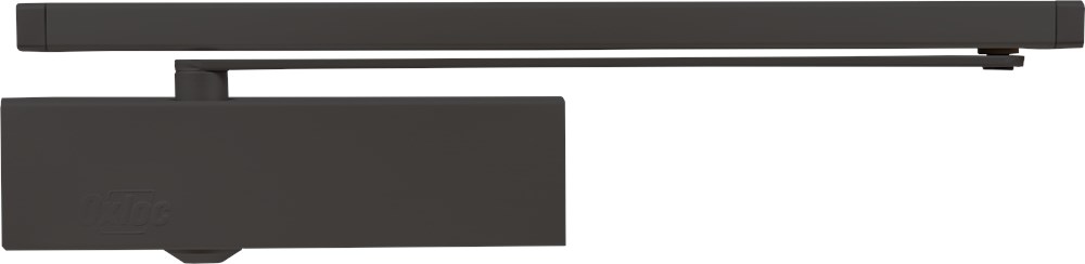 Deurdranger met glijarm EN 3-4, type OX3400-B en OX3400-G in zwarte uitvoering. Geschikt voor binnen- en buitendeuren. De glijarm loopt vlak met de deur mee, dus bij uitstek geschikt in situaties met rolluik, gordijn, etc.