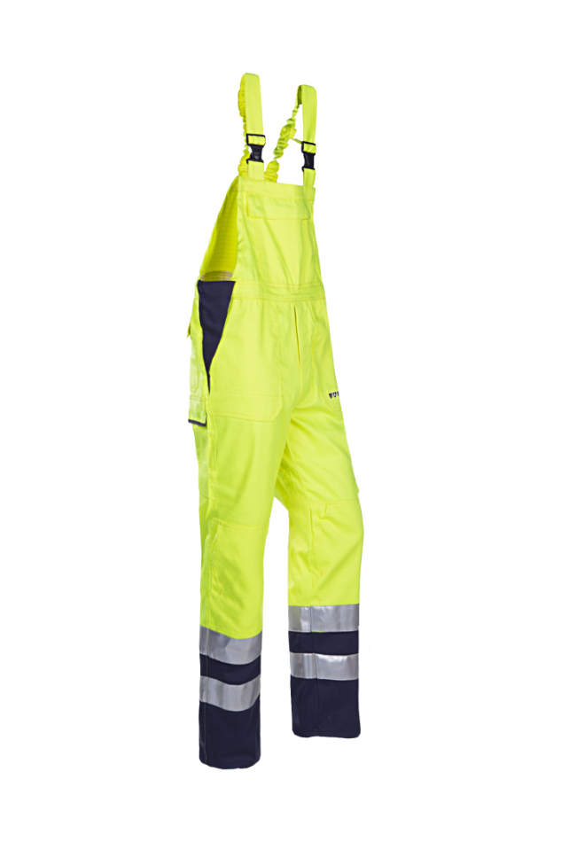 Combineer optimale veiligheid en draagcomfort met deze signalisatie bavetbroek. De ademende stof met goed vochtbeheer is geheel onschadelijk voor de huid. Deze comfortabele bavetbroek met ARC-bescherming is vlamvertragend antistatisch en biedt uitstekende bescherming tegen vlambogen, hitte en metaalspatten. Versterkte naden verhogen de bestendigheid en slijtweerstand van de broek. Voorzien van 6 verschillende multifunctionele opbergzakken en 2 kniezakken voor kniebescherming.