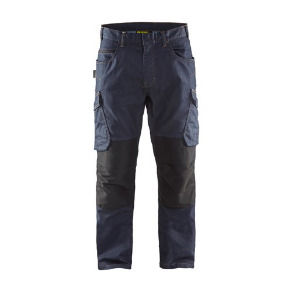 Denim stretch service werkbroek in spijkerbroek model. Voor optimale pasvorm en comfort is de werkbroek voorzien van stretch materiaal op de dijen, top-loading kniezakken in CORDURA®-stretch en zorgvuldig geselecteerde details zoals discrete reflecterende details en gsm zak van mesh. Niet aanbevolen voor werkzaamheden in de zwaardere bouw.