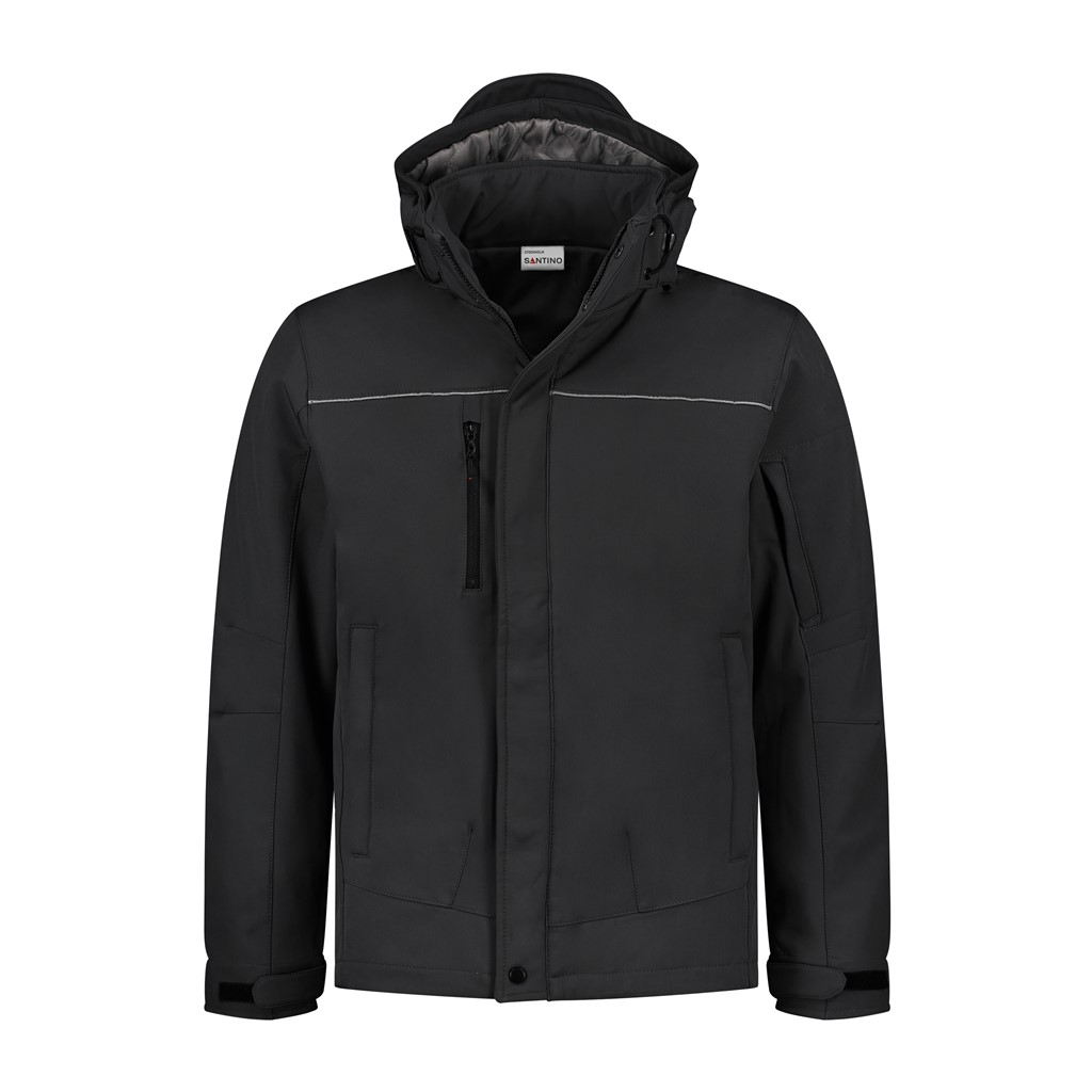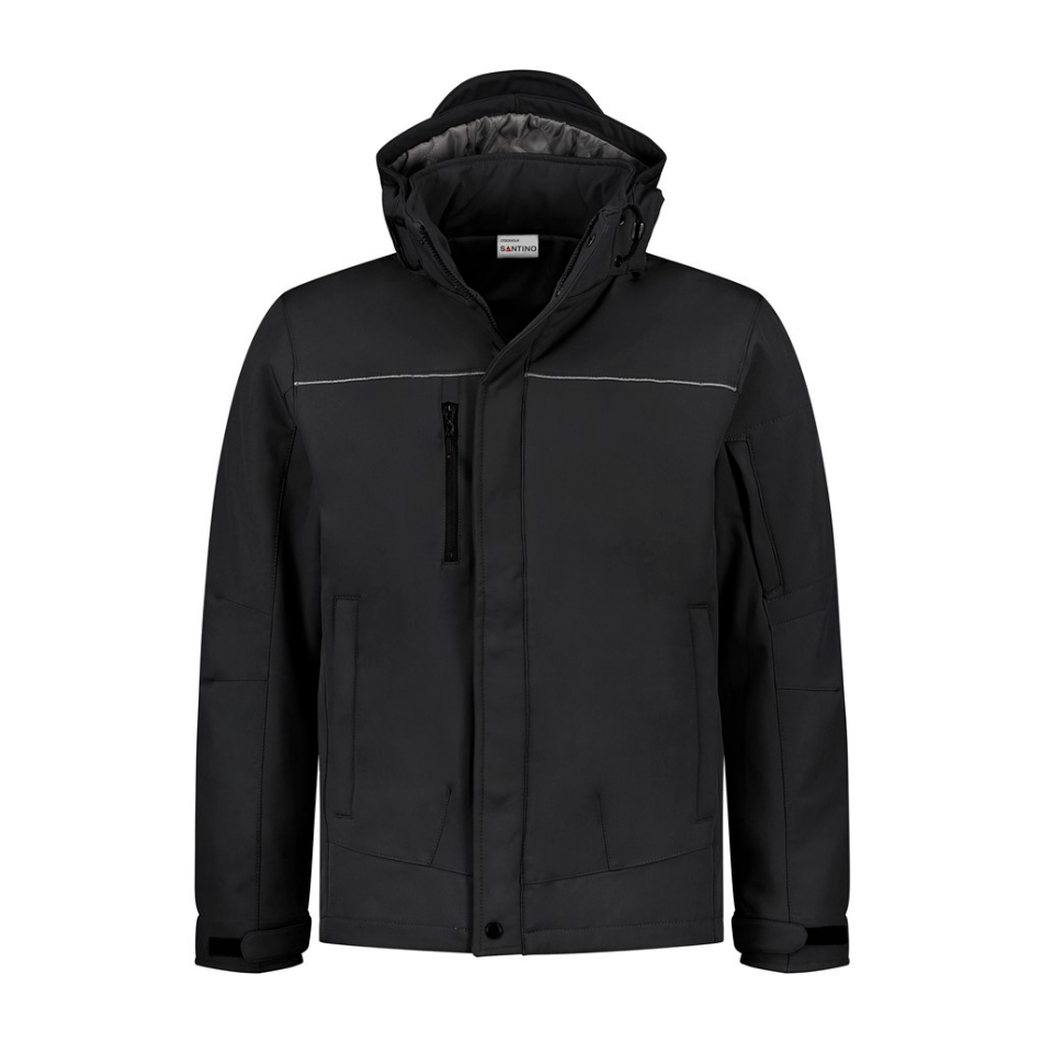 Softshell jacket, 94% polyester / 6% elastaan, 310 gr/m², 3 laags softshell, gewatteerd, regular fit met opstaande kraag, mouw met klitteband verstelbare manchetten en windvanger aan binnenzijde manchet, 2 steekzakken, borstzak en mouwzakje met YKK rits, winddicht, ademend, waterafstotend, binnenzak.