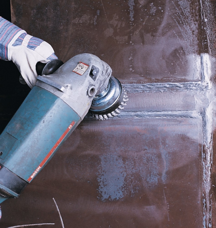 Komborstels met gegolfd draad worden gebruikt bij het bewerken van grote oppervlakken: ontroesten, polijsten, verwijderen van verf, vuil of lasspetters.