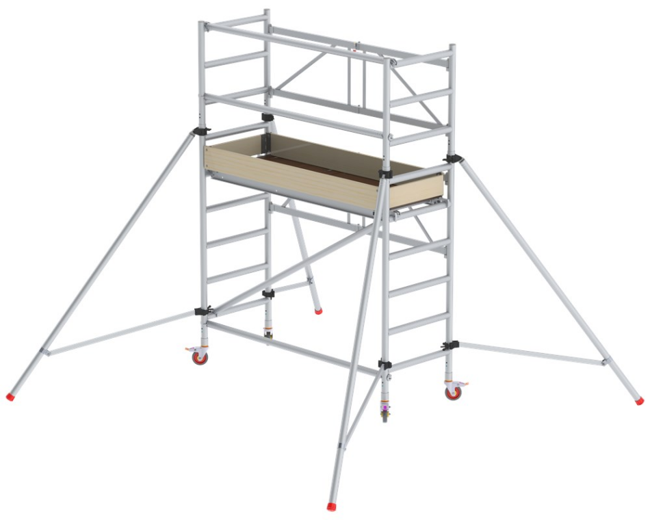Deze professionele kamersteiger (1,90 x 0,75 m.) is geschikt voor elke professionele klus in binnenruimtes. Het smalle frame, van 75cm, past door de meeste gangbare binnendeuropeningen.