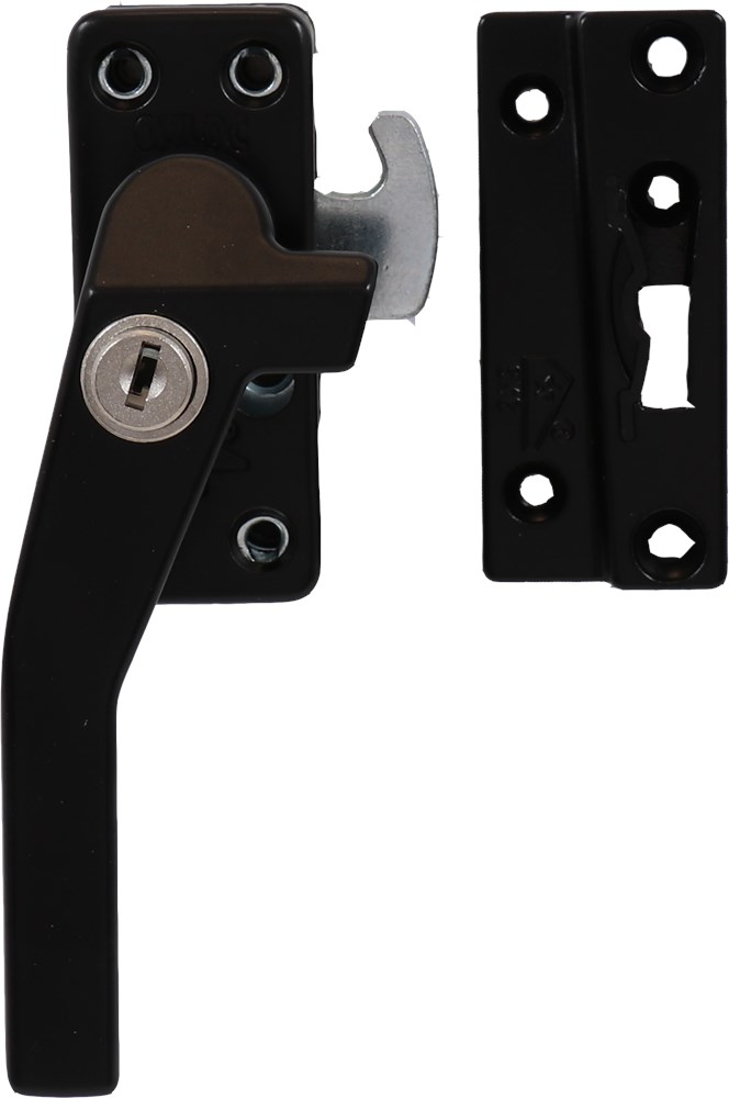 Oxloc Raamsluitingen met cilinderslot en nok zwart. inclusief opbouw sluitkom SKG1 Links