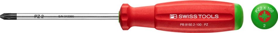 SwissGrip schroevendraaier voor Pozidriv-schroeven. Bolrond hecht met zachte oppervlakte voor hoge draaimomenten. Kleurcodering naar schroeftype, snelle herkenning. Precieze en maatnauwkeurige punt, optimale passing in de schroeven.