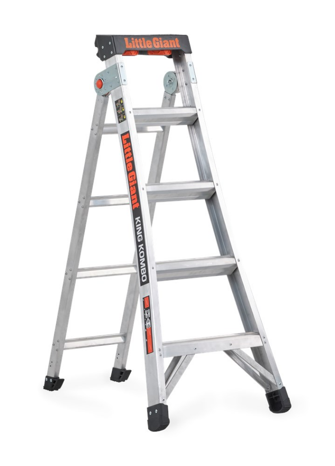 King Kombo. De trap die je óók als ladder kunt gebruiken.De King Kombo is de meest multifunctionele trap in zijn soort. Met deze enkel oploopbare trap is flexibiliteit een zekerheid en plaats je de trap met één handbeweging in wel drie verschillende standen. In A-stand gebruik je deze krachtpatser op traditionele wijze, maar het is ook mogelijk om de trap tegen een oppervlak aan te laten leunen. Op deze manier kun je nóg dichterbij jouw werkzaamheden komen. Door de achterste trapstijl om te klappen gebruik je jouw trap ook als ladder. Wel zo gemakkelijk als jij tot hogere hoogtes moet reiken.