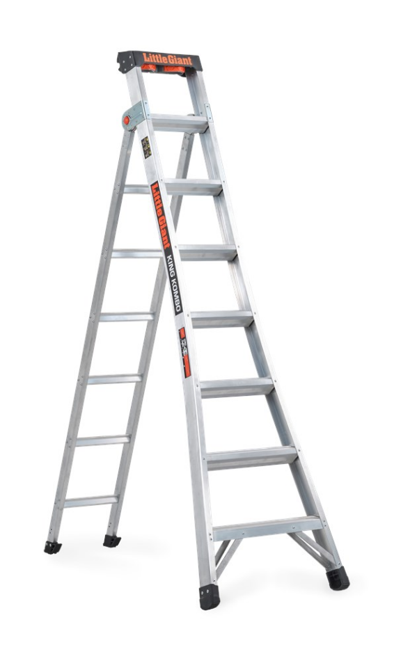 King Kombo. De trap die je óók als ladder kunt gebruiken.De King Kombo is de meest multifunctionele trap in zijn soort. Met deze enkel oploopbare trap is flexibiliteit een zekerheid en plaats je de trap met één handbeweging in wel drie verschillende standen. In A-stand gebruik je deze krachtpatser op traditionele wijze, maar het is ook mogelijk om de trap tegen een oppervlak aan te laten leunen. Op deze manier kun je nóg dichterbij jouw werkzaamheden komen. Door de achterste trapstijl om te klappen gebruik je jouw trap ook als ladder. Wel zo gemakkelijk als jij tot hogere hoogtes moet reiken.