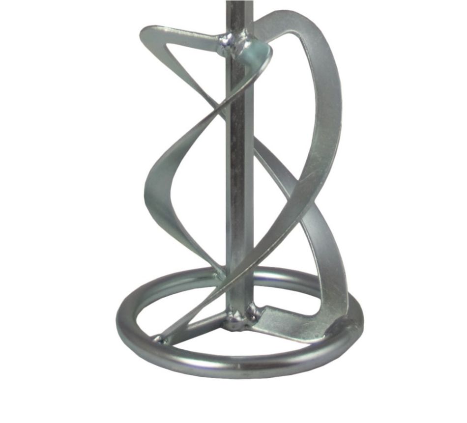 Menggarde voor het mengen van mortel (vezelhoudend), kleef- en egalisatiemortel, gips, kalk, cement, sierpleisters, kant en klaar stuc. Deze garde heeft een uitgebalanceerde constructie doordat de stang uit één stuk volmateriaal is gedraaid. Doordat het materiaal door de schoepen omhoog gewerkt wordt, wordt er een homogene menging verkregen.
