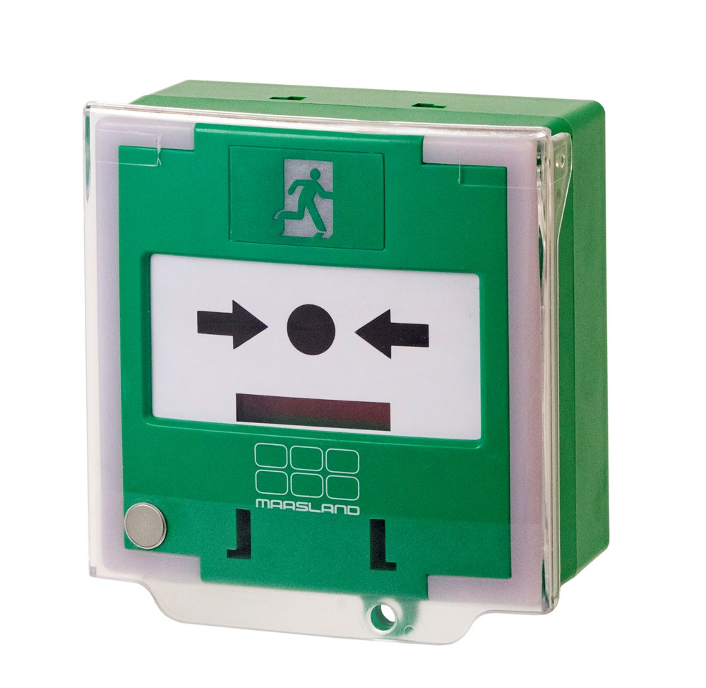 Deze handmelders zijn geschikt om in geval van calamiteiten een deur te ontgrendelen. Door op het witte plaatje te drukken schakelt de handmelder. Met bijgeleverde sleutel is deze vervolgens weer eenvoudig te resetten. Het vervangen van het witte plaatje is dus niet nodig. Alle modellen zijn voorzien van 3 wisselcontacten, rood/groene led indicatie en buzzer met instelbaar volume. De handmelder is standaard voorzien van een kunststof afdekraam voorzien van magneetcontact om ongeoorloofd gebruik van de handmelder tegen te gaan. Het magneetcontact schakelt het relais wanneer de afdekkap wordt geopend en is dus extern te signaleren.