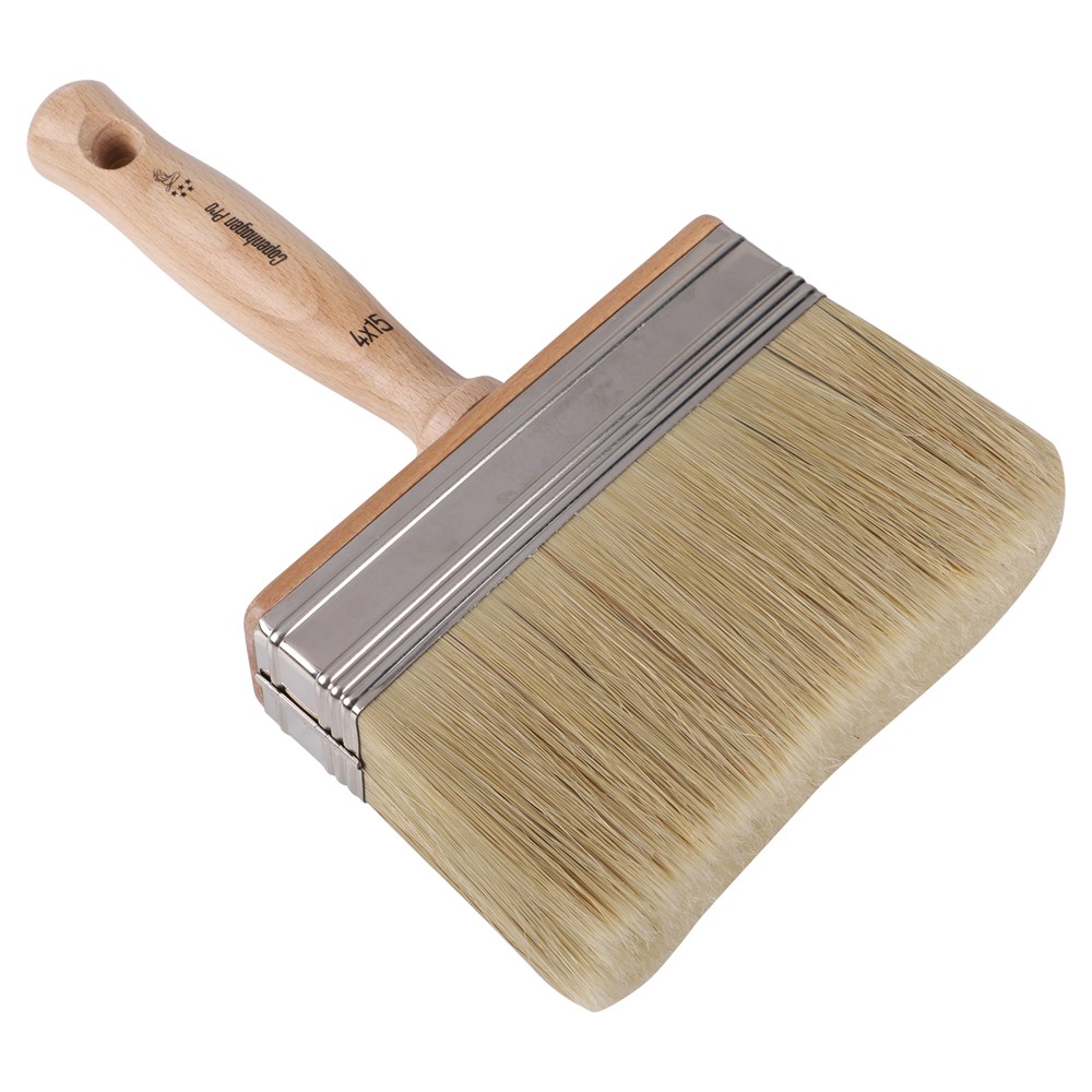Blokwitter met gelakte houten kap en beukenhouten steel voorzien van een nikkelen bus. De haren zijn vervaardigd van Wit Chinees varkenshaar gemixt met een Polymix vezel. Deze professionele blokwitter is geschikt voor alle verfsoorten. Waaronder ideaal voor muurverven. Voorzien van een emmerhaak.