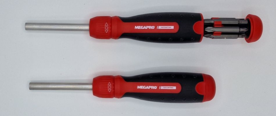 Ratelschroevendraaier met uittrekbare bithouder, voorzien van een ZAD 8 SOLID-CORE 28-tands ratel, die een koppel van meer dan 225 inch lbs levert.