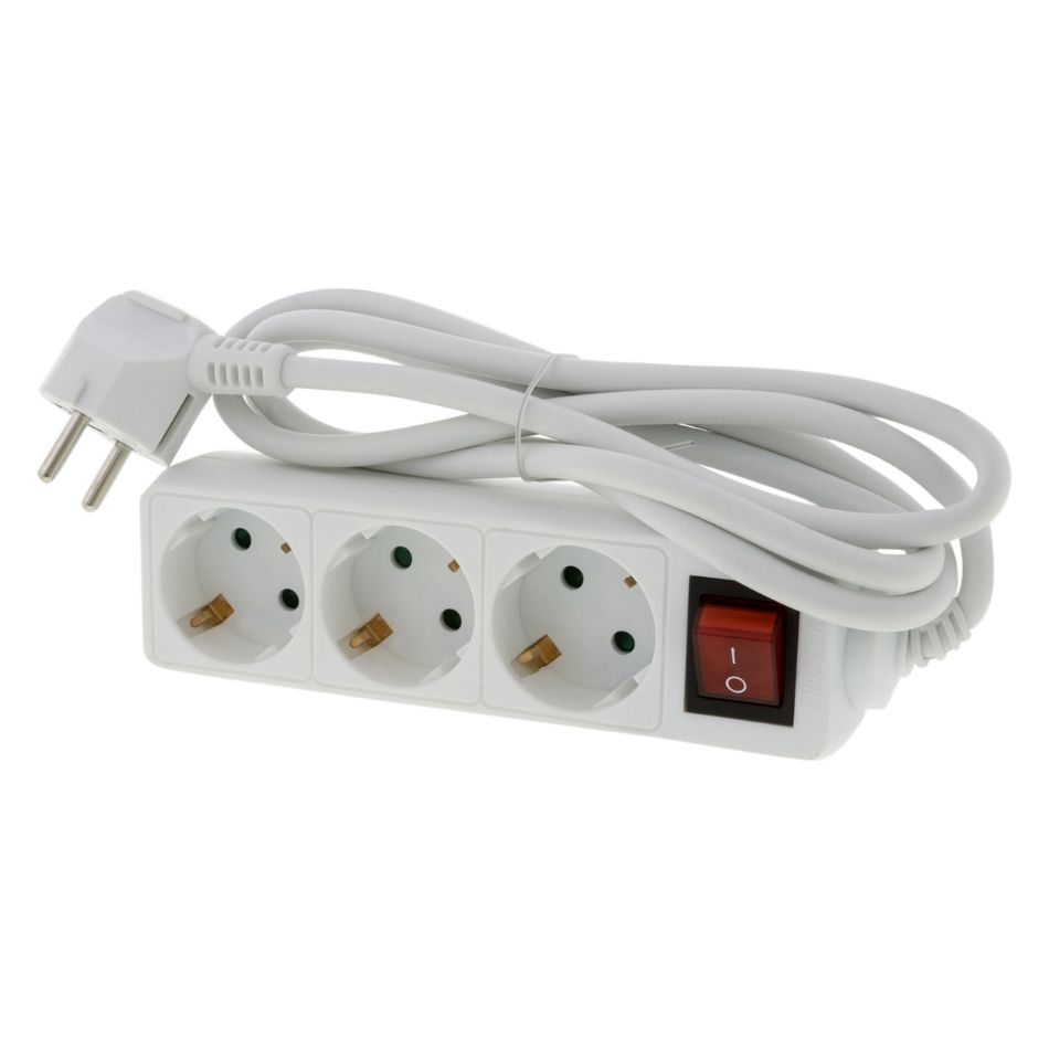 3-voudige stekkerdoos met randaarde. Met schakelaar. Alleen voor binnengebruik in droge ruimten. Alleen voor huishoudelijke doeleinden. Maximaal 3680 Watt.