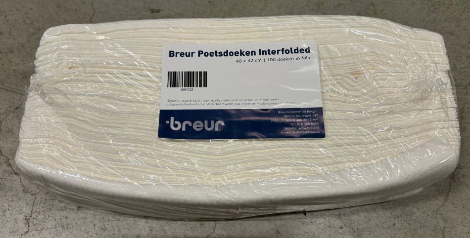 Breur poetsdoeken 40x42cm interfold heavy-duty wit 5 x100 stuks in sealbag