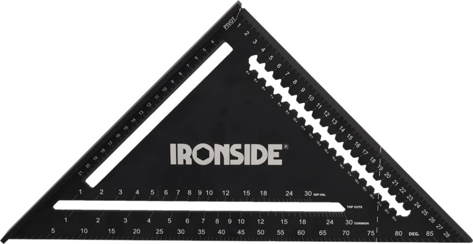 De robuuste winkelhaak is nauwkeurig met haakse hoeken en een gedetailleerde maatverdeling in halve centimeters. De twee zijden zijn 30 centimeter lang en zijn te gebruiken als winkelhaak en parallelgeleider. Aan de lange zijde is een verdeling in graden opgenomen, waarmee u het gereedschap ook als gradenboog kunt gebruiken. Net onder de maatverdeling vindt u een gleuf met ‘inhammen’, zodat u parallel kunt aftekenen zoals met een kruisstaal. U kunt de haak ook als verstekhaak gebruiken.