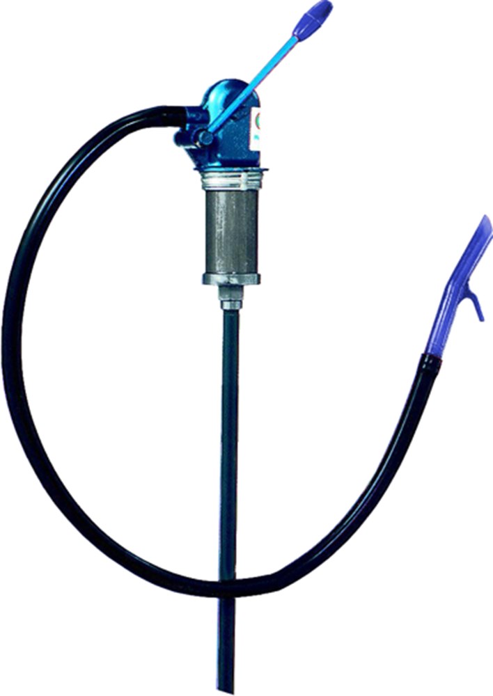 Te gebruiken voor het oppompen van o.a. dunne oliën. Twee vataansluitingen, M64x4 en R2", zuigbuis van 1,20 m, 1 m pvc slang met uitloop. Men kan de pomp voorzien van een hangslot.
