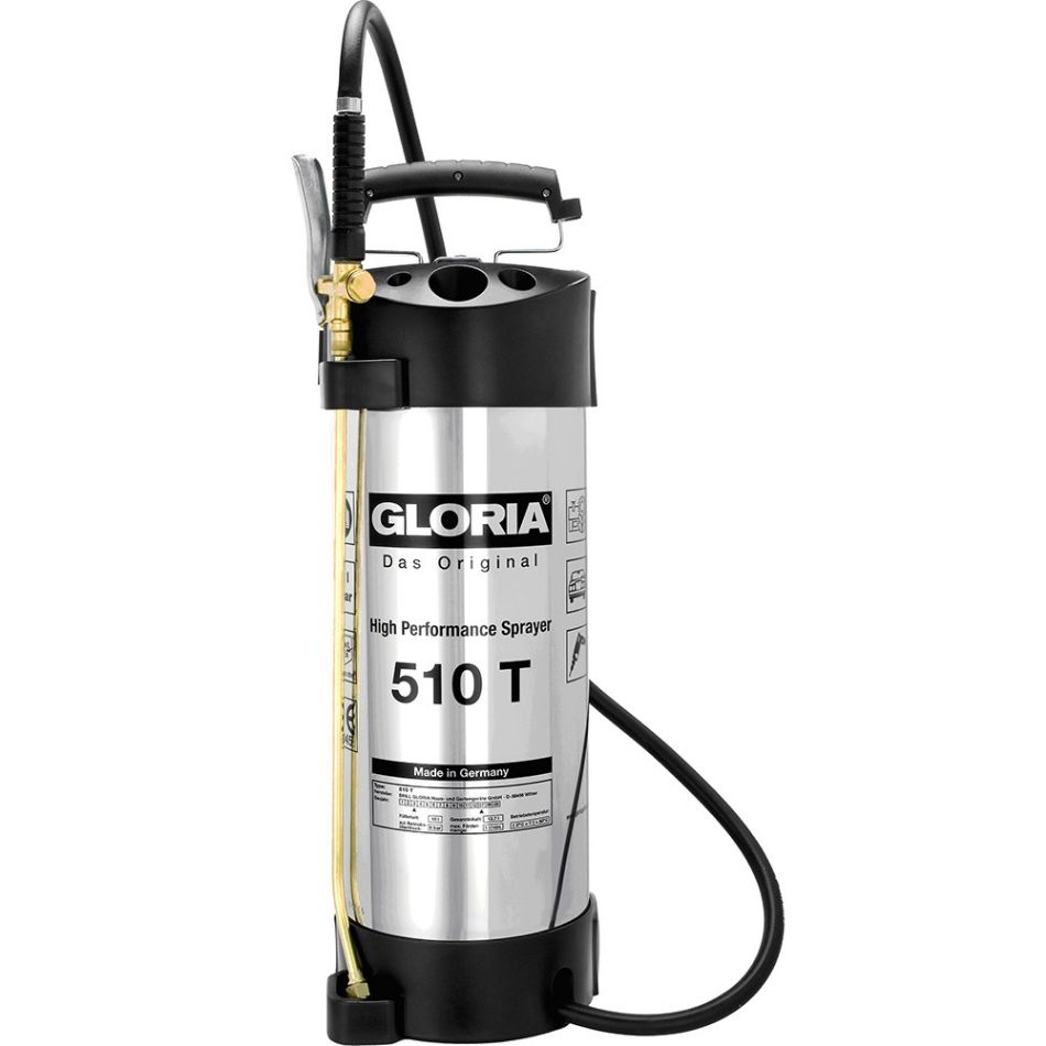 Oliebestendige rvs hogedrukspuit, stevige messing knijpkraan, messing spuitstok met vlakstraler, manometer, veiligheids-/afblaasventiel