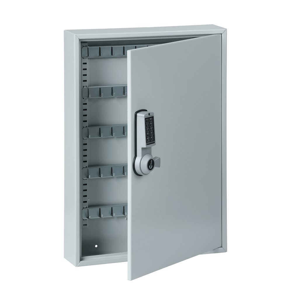 Degelijke sleutelkasten, inliggende deur. De metalen hakenlijsten zijn in hoogte verstelbaar.
