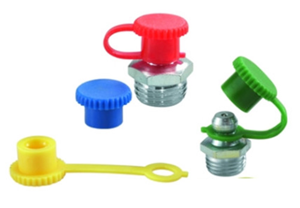 Stofkappen voor hydraulische smeernippels volgens DIN 71412. SK/RL = Rood SK/VL = Groen SK/GL = Geel SK/BL = Blauw