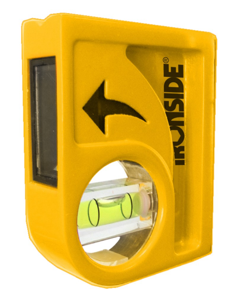 Een zak gegoten waterpas van 8 cm met 2 fijngefreesde magnetische oppervlakken met V-groeven. Nauwkeurigheid van 0,5 mm/m.