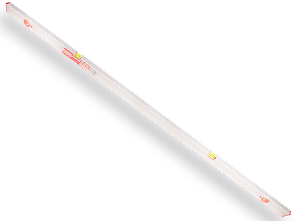 BMI Alu. stelwaterpas 200 cm met 4 libellen. Voorzien van stelvoetjes en gepatenteerde, gemakkelijk afleesbare ronde libellen Sterk aluminium profiel voor een langere levensduur en schokabsorberende rubberen doppen aan beide uiteinden.