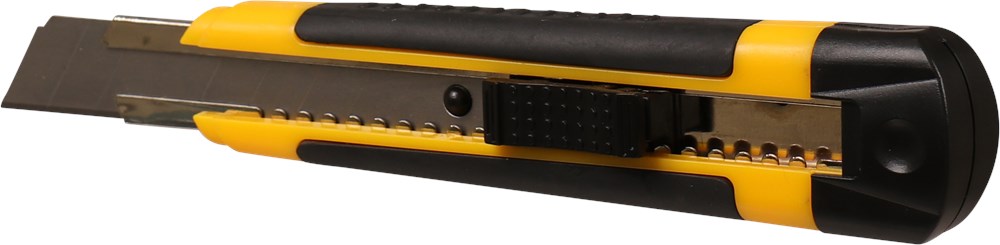 Kunststof, met twee-componenten greep. Met de uitneembare achterkant kunnen de gebruikte mesjes veilig worden afgebroken. Met autolock mesblokkering, metalen meshouder en reservemagazijn.