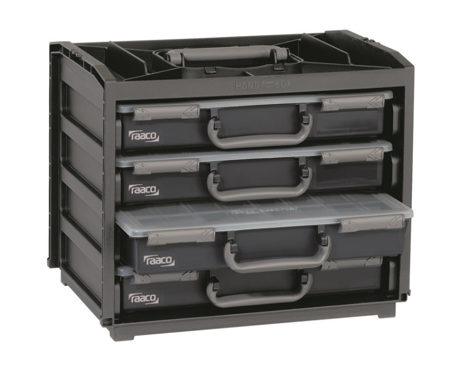 De Handy Box Silverline is een mobiele box gevuld met een viertal assortimentsdozen: