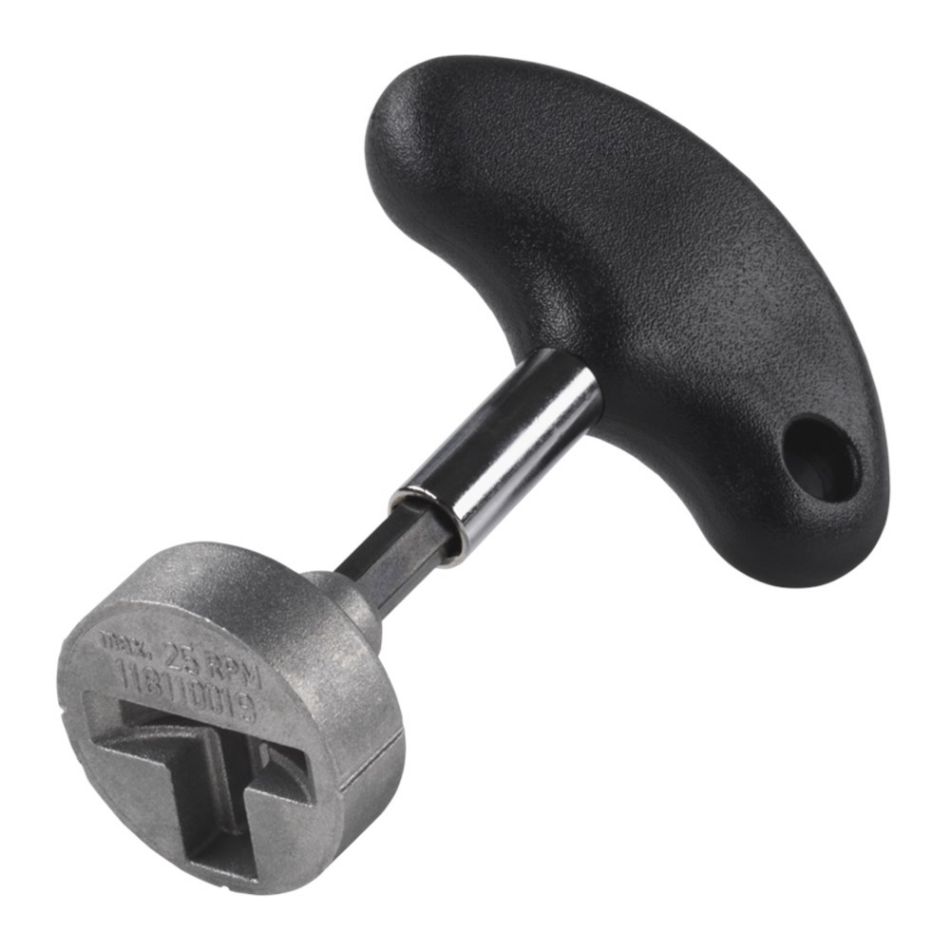 Met de haakschroevendraaier vereenvoudigt u op eenvoudige wijze het bevestigen van haak- en ringschroeven. De zeskant-¼"-aandrijving maakt een snelle gereedschapswissel en een goede houvast in de bithouder mogelijk. Deze kan ook probleemloos met gangbare grepen of accumachines (max. 25 rpm) met ¼"-zeskanthouder (6,35 mm) worden gebruikt. De ergonomische handgreep in T-vorm zorgt voor een optimale krachtoverbrenging onder elke werkhoek. De handgreep met zeskantopname kan daarnaast als handschroevendraaier voor bits of dopsleutels worden gebruikt. De haakschroevendraaier is een hoogwaardig en veelzijdig stuk gereedschap dat in geen werkplaats mag ontbreken.