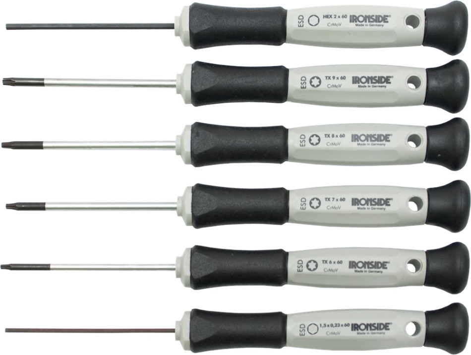6-delig. Antistatisch, van chroom-molybdeen-vanadiumstaal met zwarte punt, draaiende top en twee-componenten hecht.