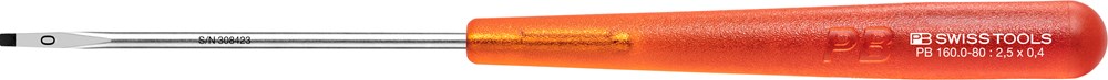 Elektronica-schroevendraaier voor kleine gleufkop-schroeven in de elektronica en fijnmechanica. Precieze, maatnauwkeurige punten, optimale passing in de schroeven. Lang, slank hecht, voor fijn schroef- en justeerwerk.
