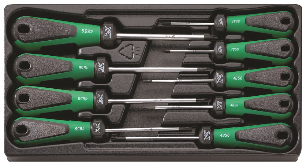 9-delig, 3-componenten greep, TORX® TAMPER RESISTANT, inhoud: 4856: T8, T9, T10, T15, T20, T25, T27, T30, T40.
