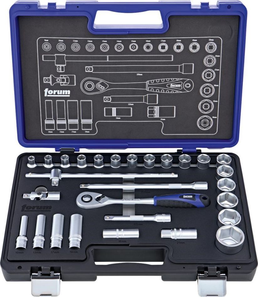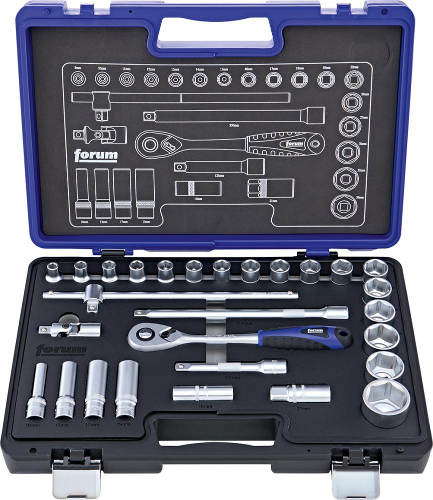17 dopsleutels 8; 10; 11; 12; 13; 14; 15; 16; 17; 18; 19; 22; 24; 27; 30; 32; 36 mm