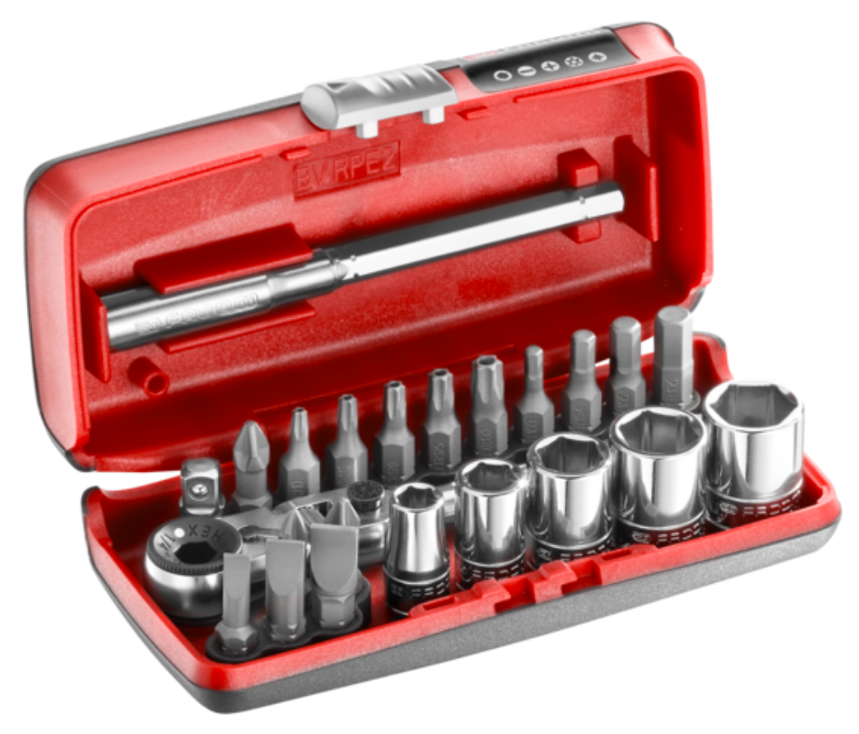 Doppenset 6 kant 1/4" met ratel met 180° flexibele kop.