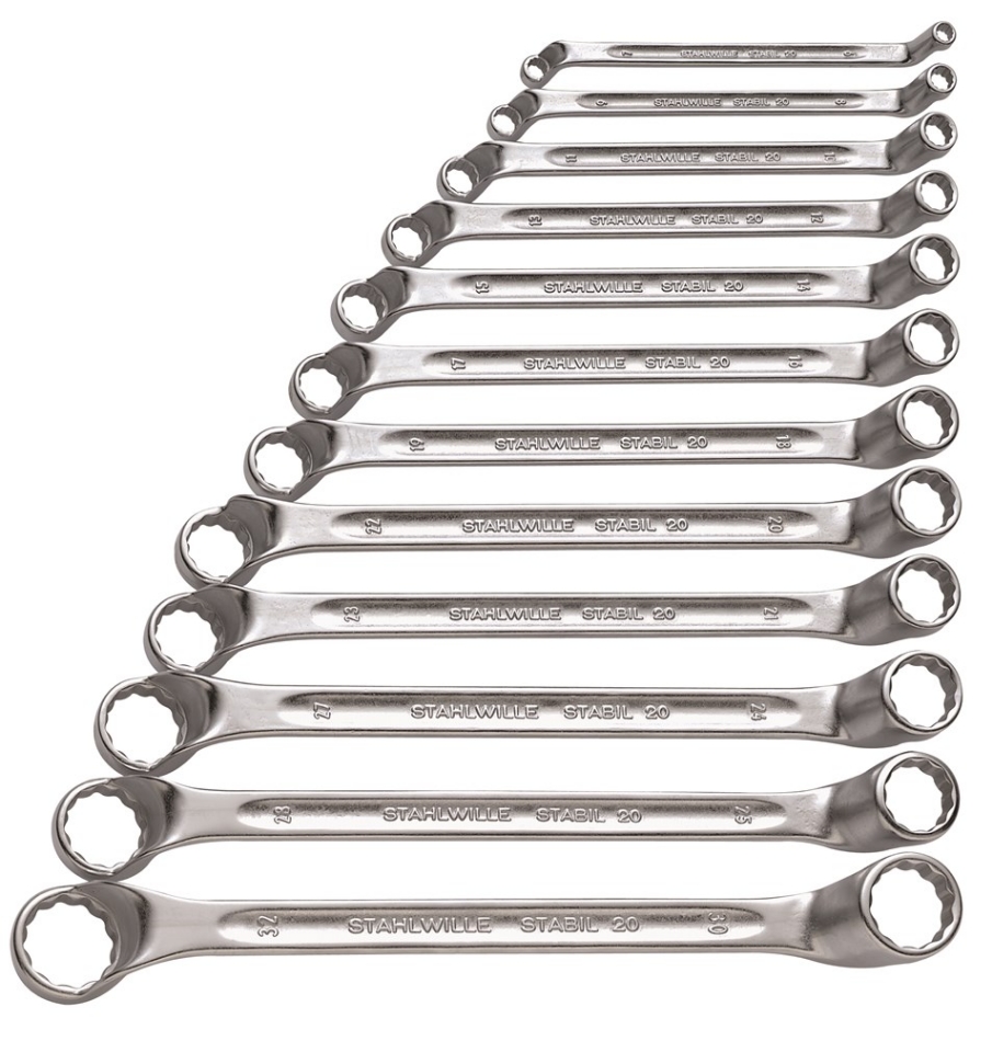 12-delig, inhoud: 6 x 7; 8 x 9; 10 x 11; 12 x 13; 14 x 15; 16 x 17; 18 x 19; 20 x 22; 21 x 23; 24 x 27; 25 x 28; 30 x 32 mm.