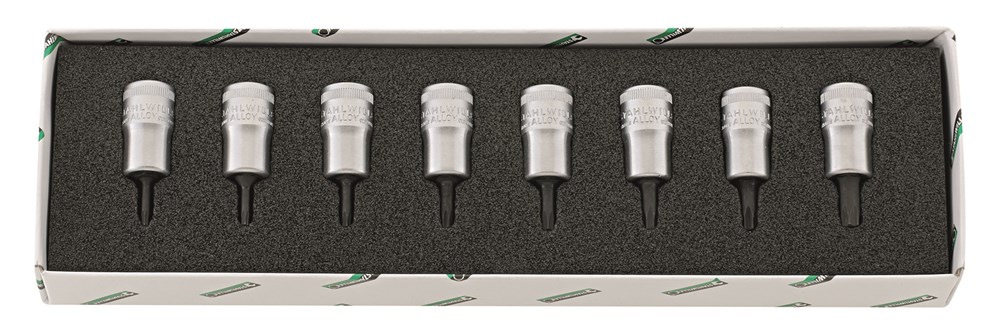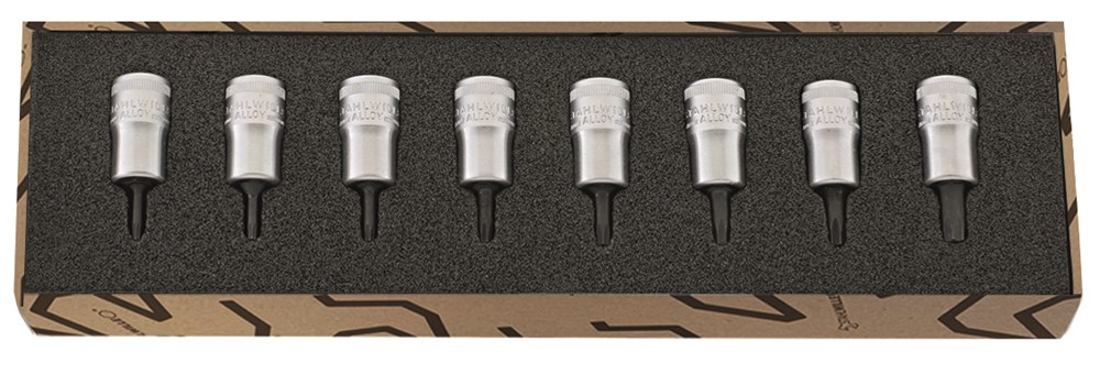 8-delig, voor inwendige TORX®-bouten, inhoud: 8 doppen nr. 49TX: T9; T10; T15; T20; T25; T27; T30; T40.