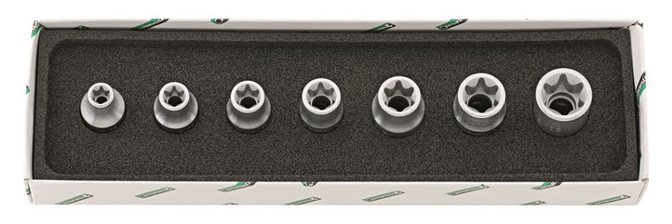 7-delig, voor uitwendige TORX®-bouten, inhoud: nr. 50TX: E10; E12; E14; E16; E18; E20; E24.