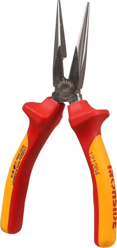 VDE-geïsoleerd 1.000 V. Recht model. Voor harde en zachte draad. Met halfronde getande bekken, met zijsnijder. Verchroomd met zware twee-componenten handvatten.
