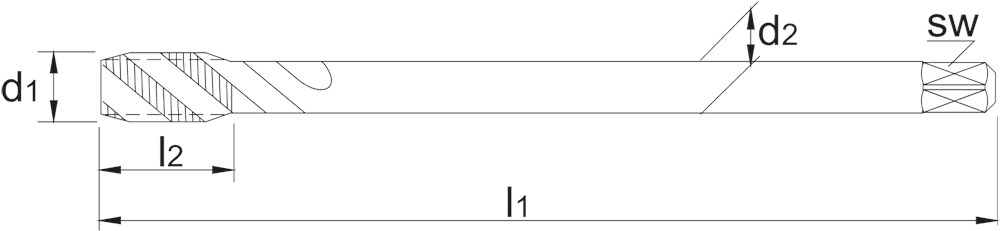 DIN 376, doorloopschacht, voor blinde gaten, aansnijding 2-3 gangen, spiraalhoek 40°