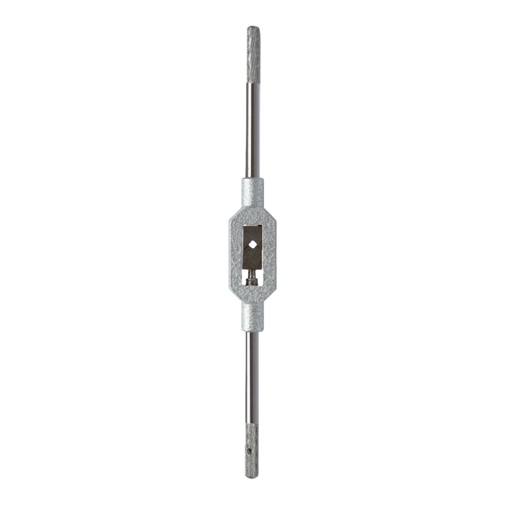 Ideaal voor draadsnijwerk op moeilijk bereikbare plaatsen. Met tweebeksvoering voor het spannen van vierkante schachten. Met stalen grepen, daarvan één greep afschroefbaar.