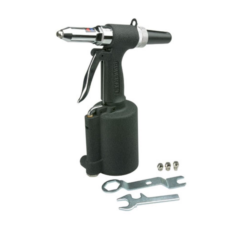 Handige popnageltang tot 5mm met opvangbak voor resten van de afgebroken klinknagelpennen. Duurzaam lucht-hydraulisch krachtvermenigvuldigingssyseem systeem en ophangpunt voor gebruik van balancers. Met 4 verschillende maten mondstukken. Alleen te gebruiken voor koper, aluminium of zachtere materialen.