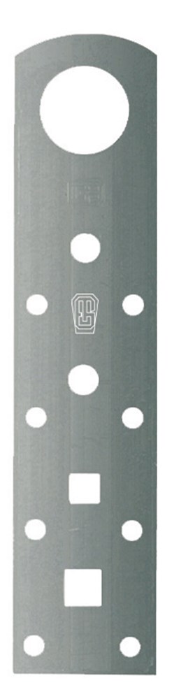 Metalen strip met een oog en schroefgaten, bedoeld als hijsvoorziening voor houten kozijnen, puien en elementen. Het hijsen dient plaats te vinden conform de richtlijnen van de SHR.