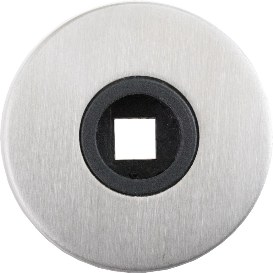 Rvs AISI 304 (A2) mat geborsteld, met onzichtbare bevestiging. Afmeting Ø 52x11 mm.