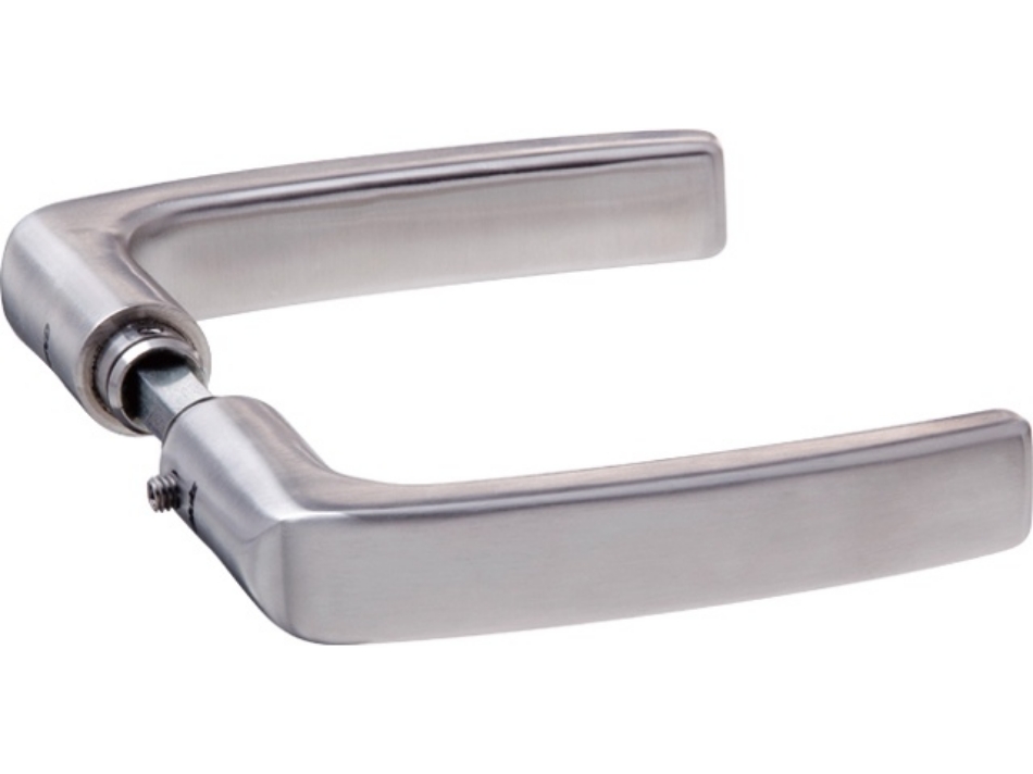 Rvs, met 16 mm kruklager en 8 mm krukstift, voor deurdikte van 37-43 mm. Zonder schilden. Afmeting 124x59 mm.