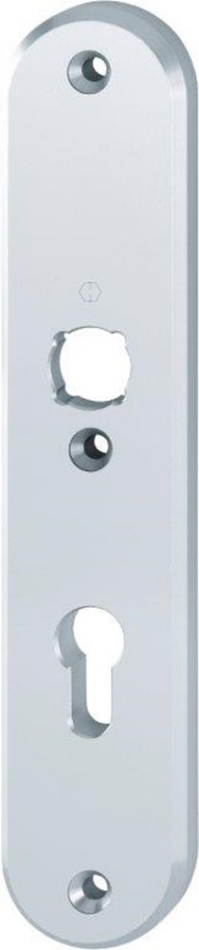 HOPPE afgerond inbraakwerend binnenschild van massief aluminium, met rondom facet, conform NEN 5089, SKG®***- keurmerk. Binnenzijde met zichtbare bevestiging met 3 x M6 kruiskop Bouten (Apart bestellen) , Krukgat voorzien van uitsparingen om vaste knop te monteren.